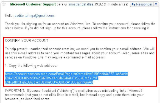 En esta parte nos dice que tenemos que activar nuestra cuenta, y nos dice que no hagamos click sobre el link, sino que lo copiemos y pegemos en el navegador para ya activar la cuenta, pero no pasa nada si queres hacer click sobre el link, al fin y al cabo, hace lo mismo