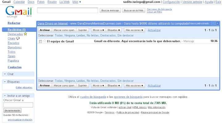 Esta es la ventana que nos aparecera cada vez que entremos a nuestra cuenta de Gmail