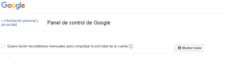 Solo tienes que activar la primera y única opción que aparece antes del listado y Google te enviará un recordatorio cada mes. Sabrás todo lo que estás guardando en Google y podrás actuar en consecuencia.