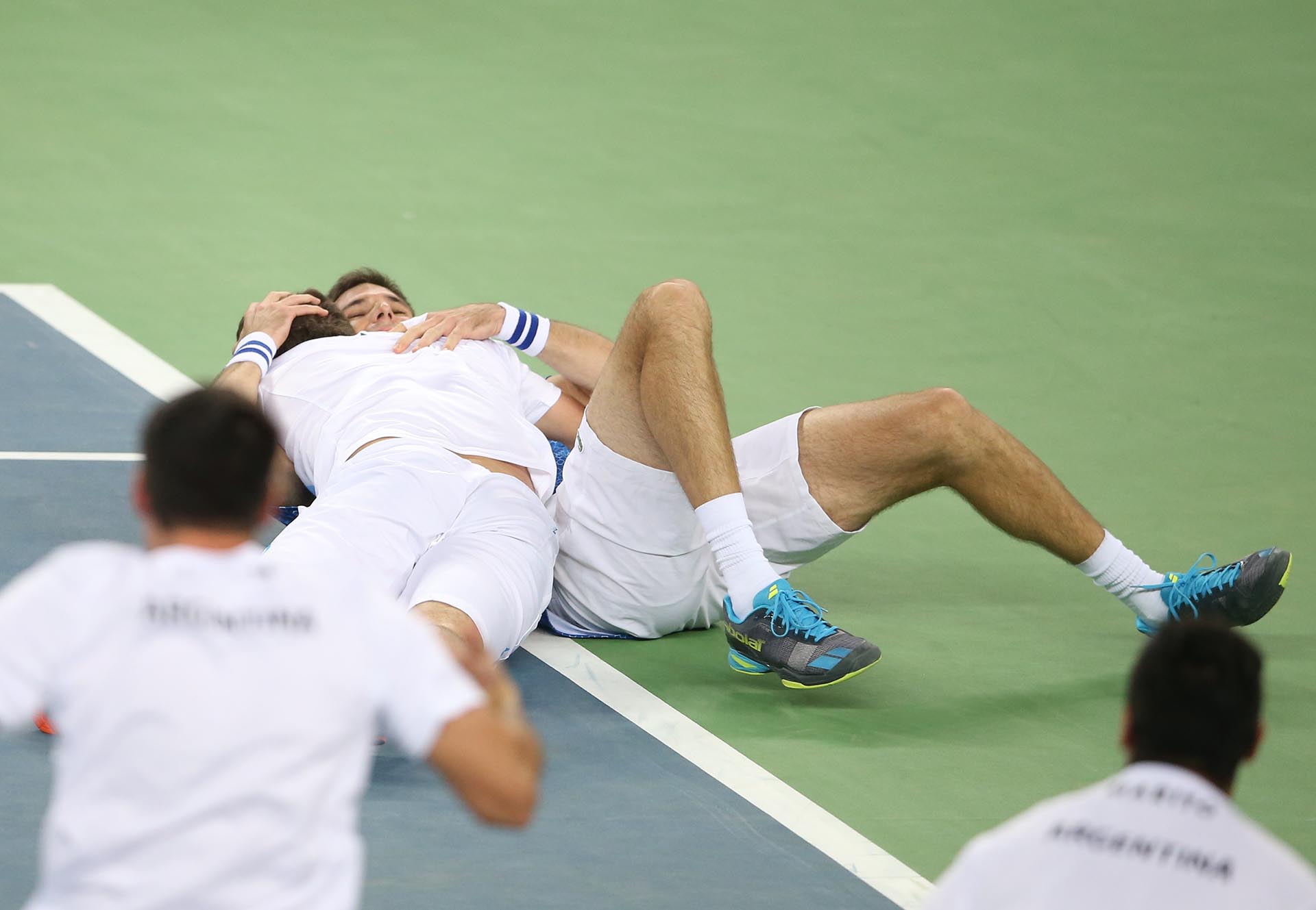 El abrazo de todo el equipo argentino después de ganar la Copa Davis