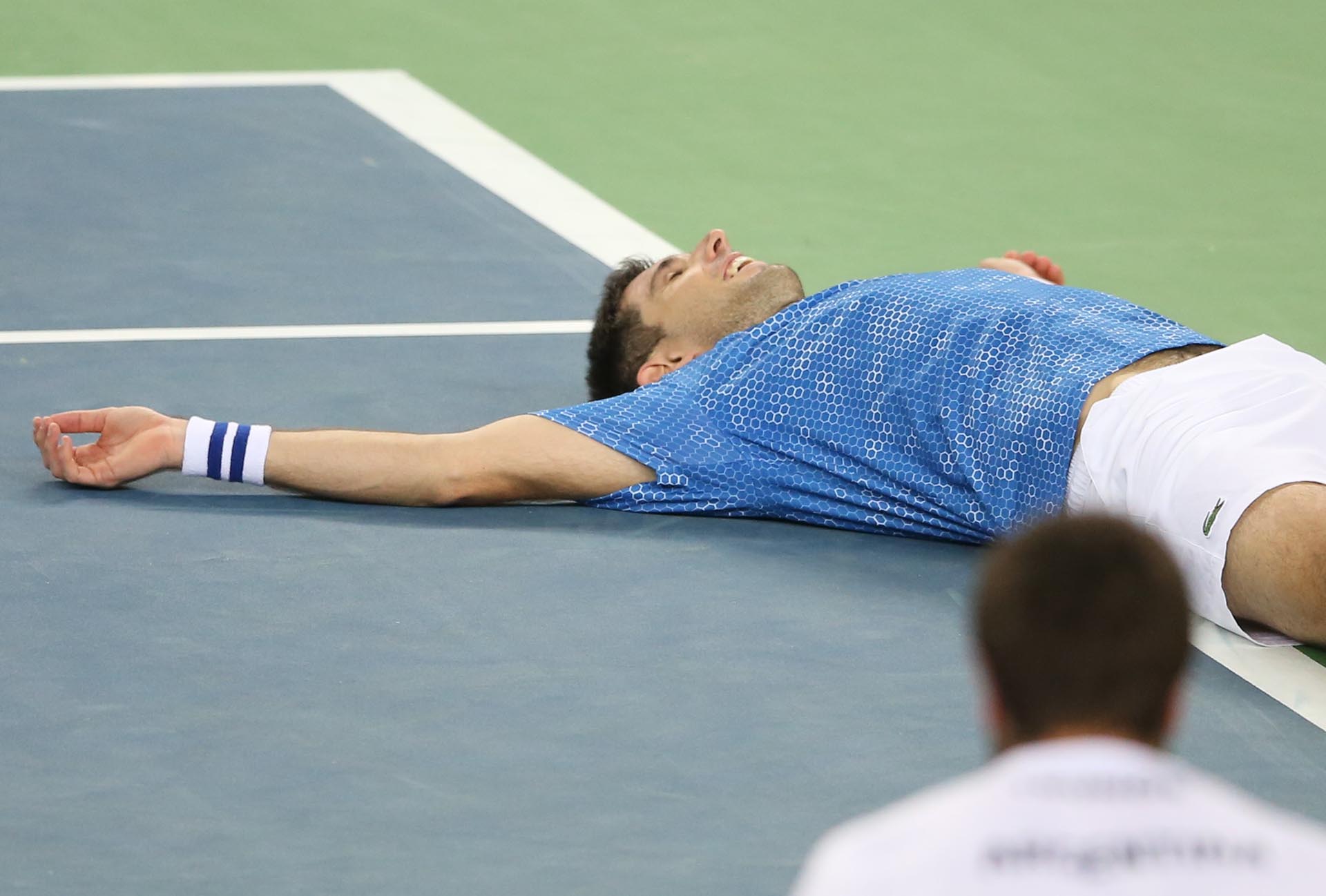 El instante después de la gloria. Delbonis se desparrama en el piso luego del triunfo