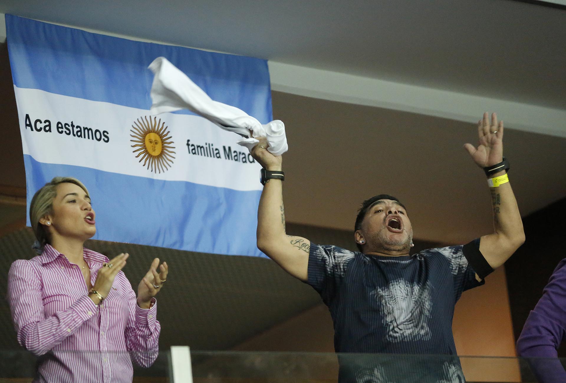 El festejo de Maradona luego de un punto de Delbonis