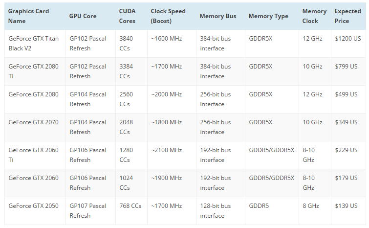 A partir de ahí aparecerán también las GTX 2060 Ti, GTX 2060 y GTX 2050 para cubrir las necesidades de una gama media cada vez más potente que también supondrá un refresco de las GPUs GP106 y GP107 de la familia Pascal con más núcleos CUDA, y mayores frecuencias de reloj. Como en el caso anterior